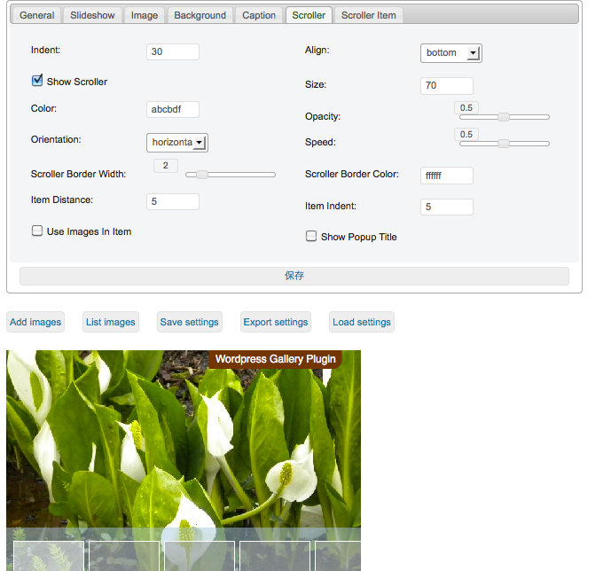 Scrollerに画像サムネイル表示したいときは、Use Images in Itemのところにチェックをいれます。
