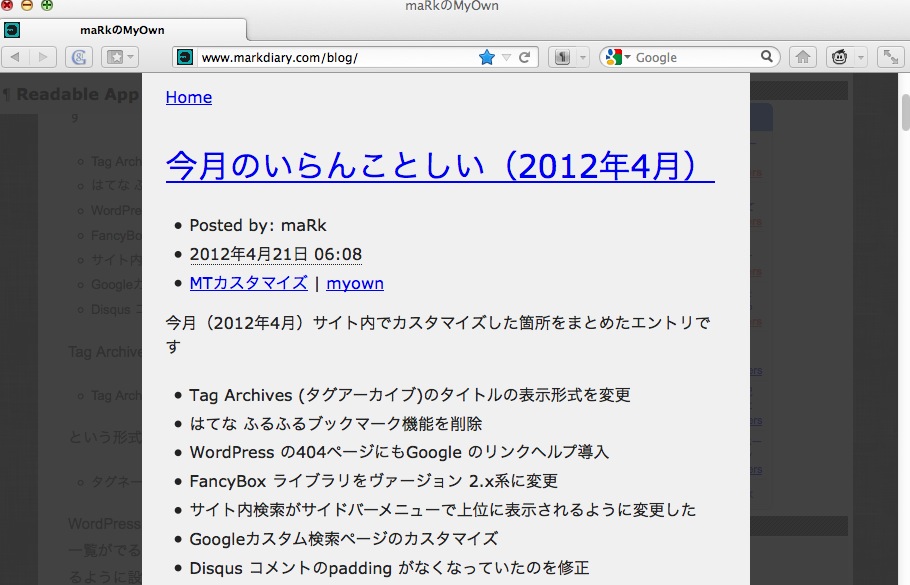 今月(2012年5月)、サイト内でカスタマイズした箇所をまとめたエントリです