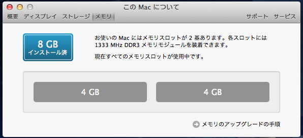 メモ:Macbook Pro のメモリを4GB→8GBへ増設