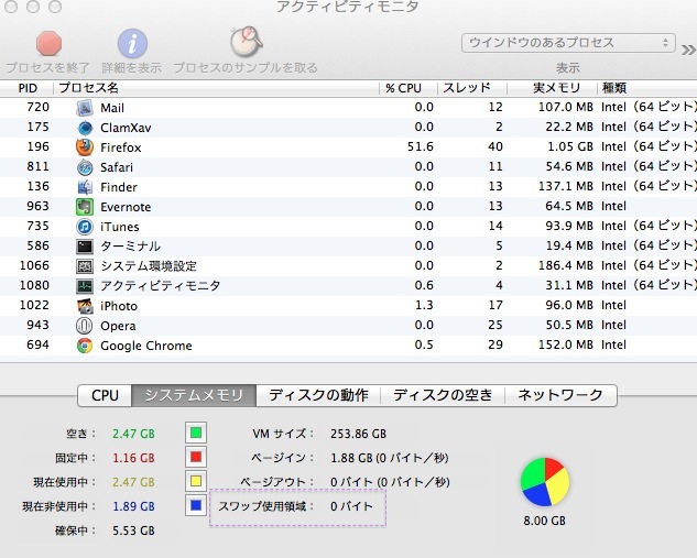 スワップの生成がほとんどなくなっていることは確認出来ています。