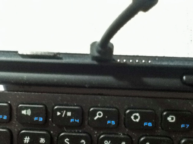 キーボードに充電用のケーブルを差してみたところです。 タブレットとドッキング中はタブレット側にケーブルを差すことになるみたい。
