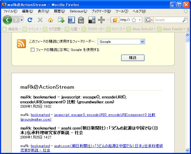 del.icio.usのブックマークした記事リストを表示させる、よくあるリンクロールのページを作りました。今回は勉強という意味でJSONに挑戦することに